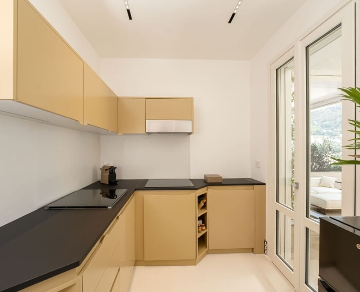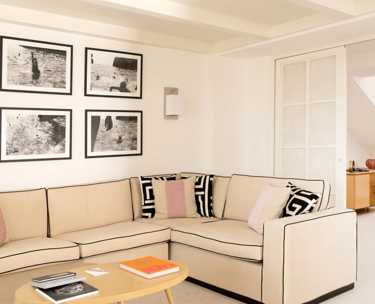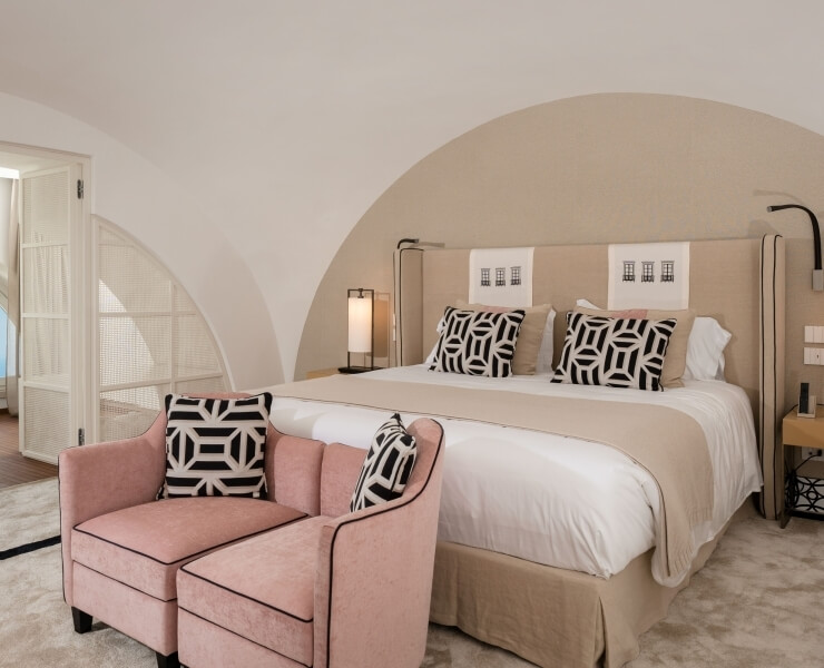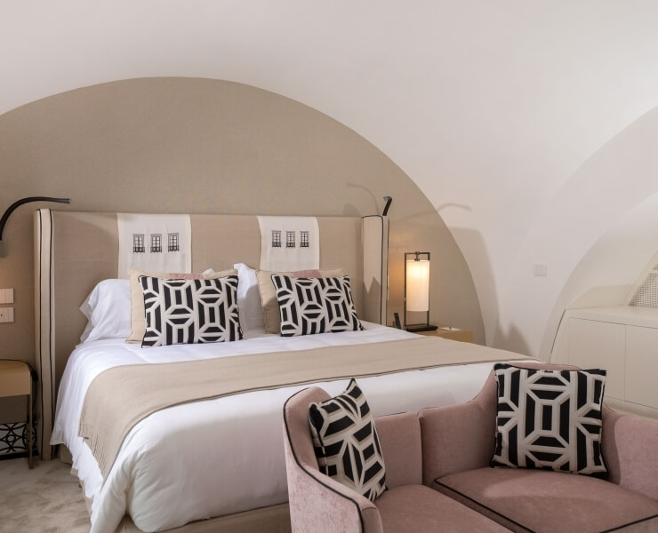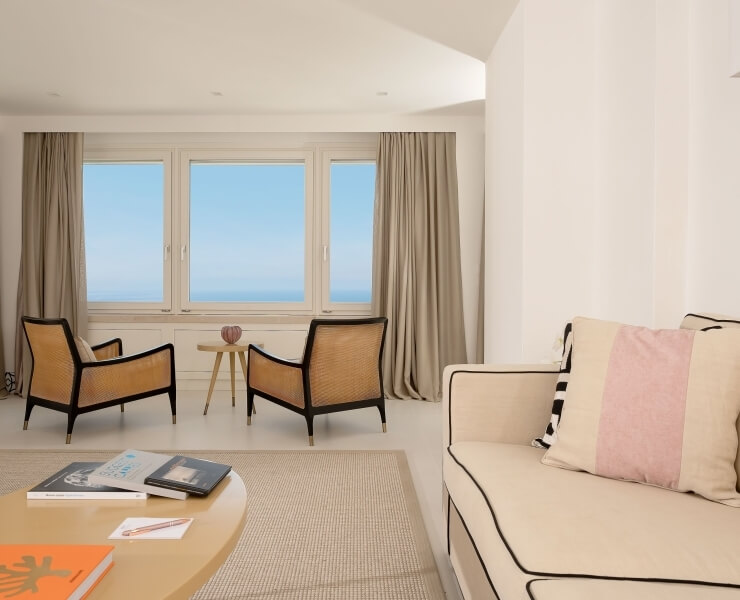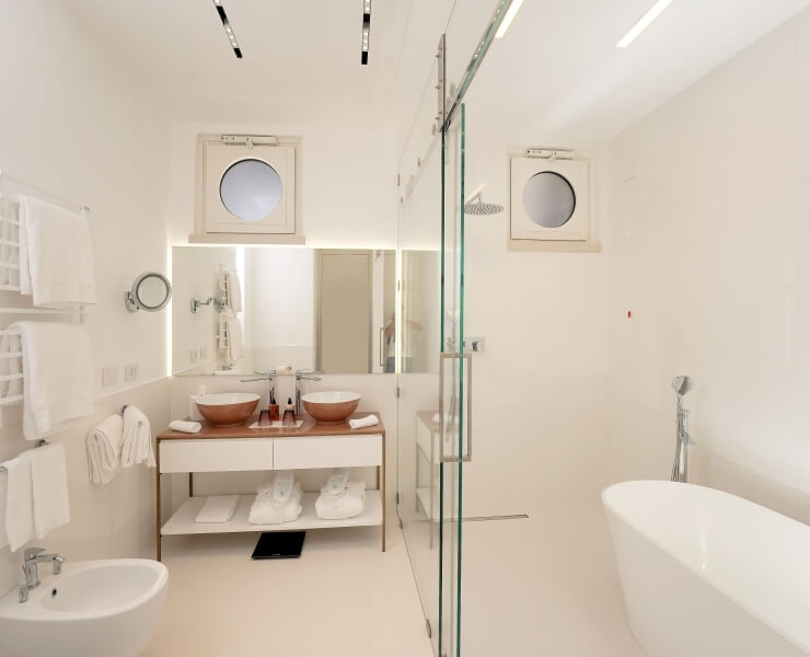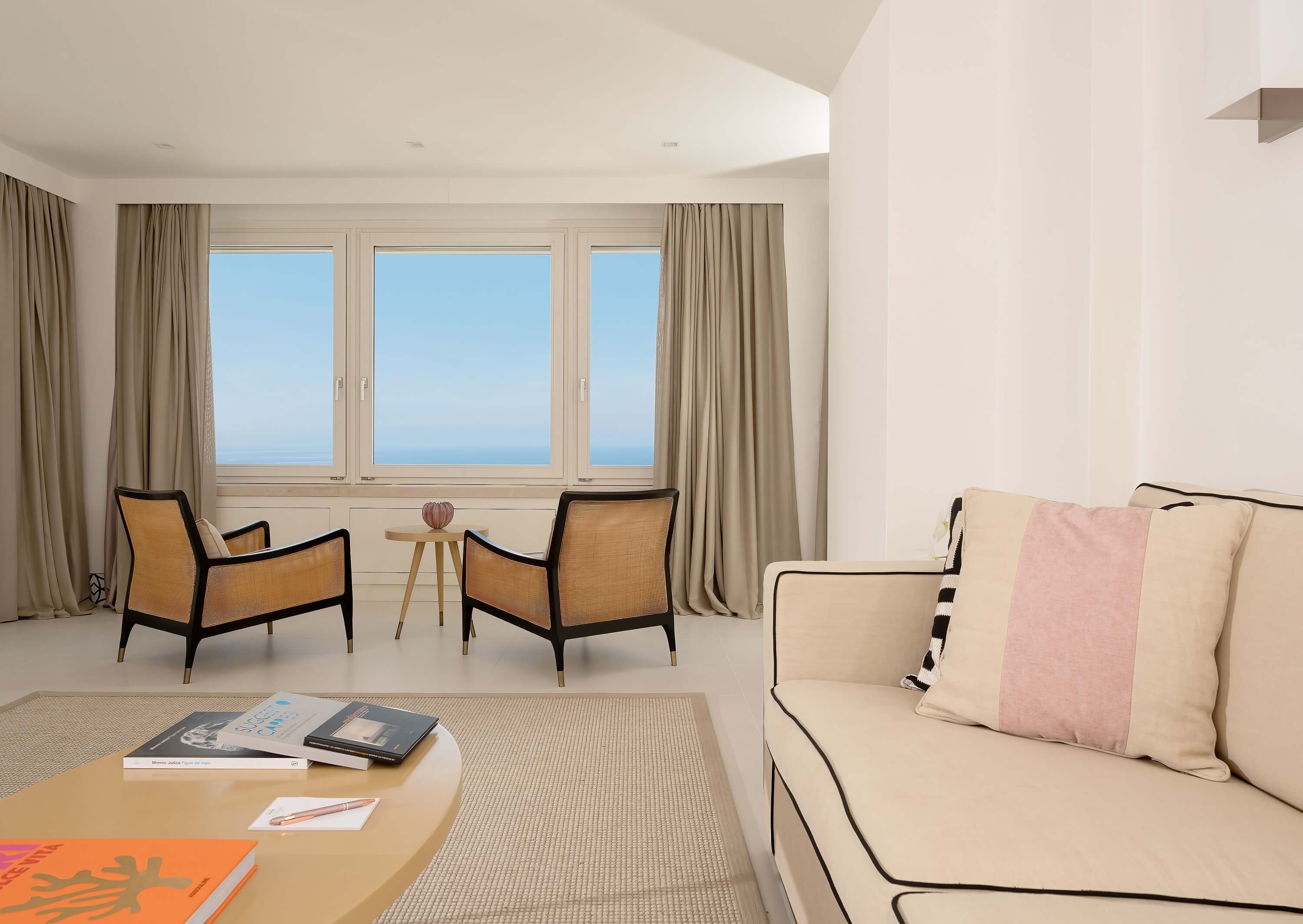 Palazzo M offre una spaziosa Duplex Suite dislocata su due livelli. Il piano terra offre una zona giorno molto luminosa, una cucina separata ed attrezzata ed un bagno padronale completo di vasca, doccia e doppi lavandini. Dal soggiorno si accede alla generosa terrazza allestita con tavolo da pranzo e lettini con vista sul Golfo di Napoli.